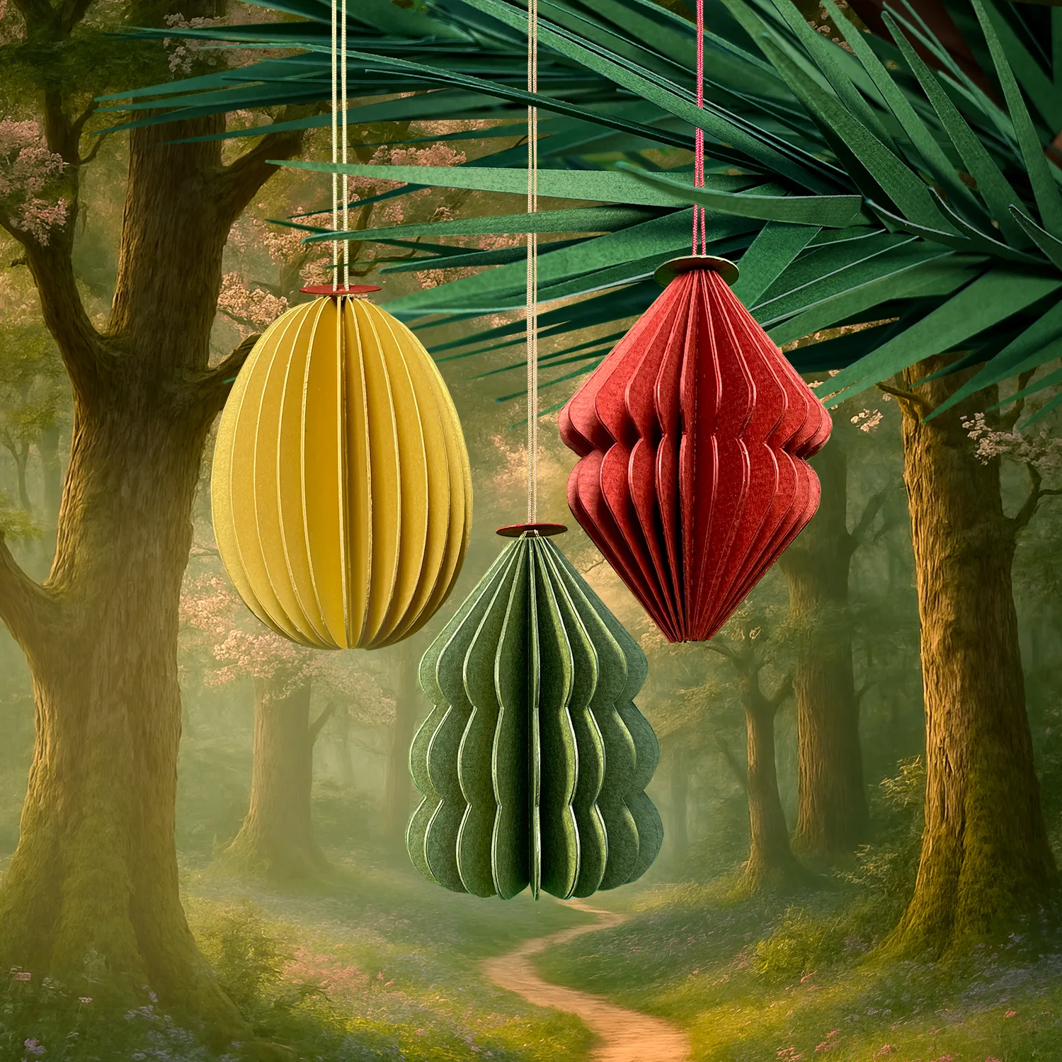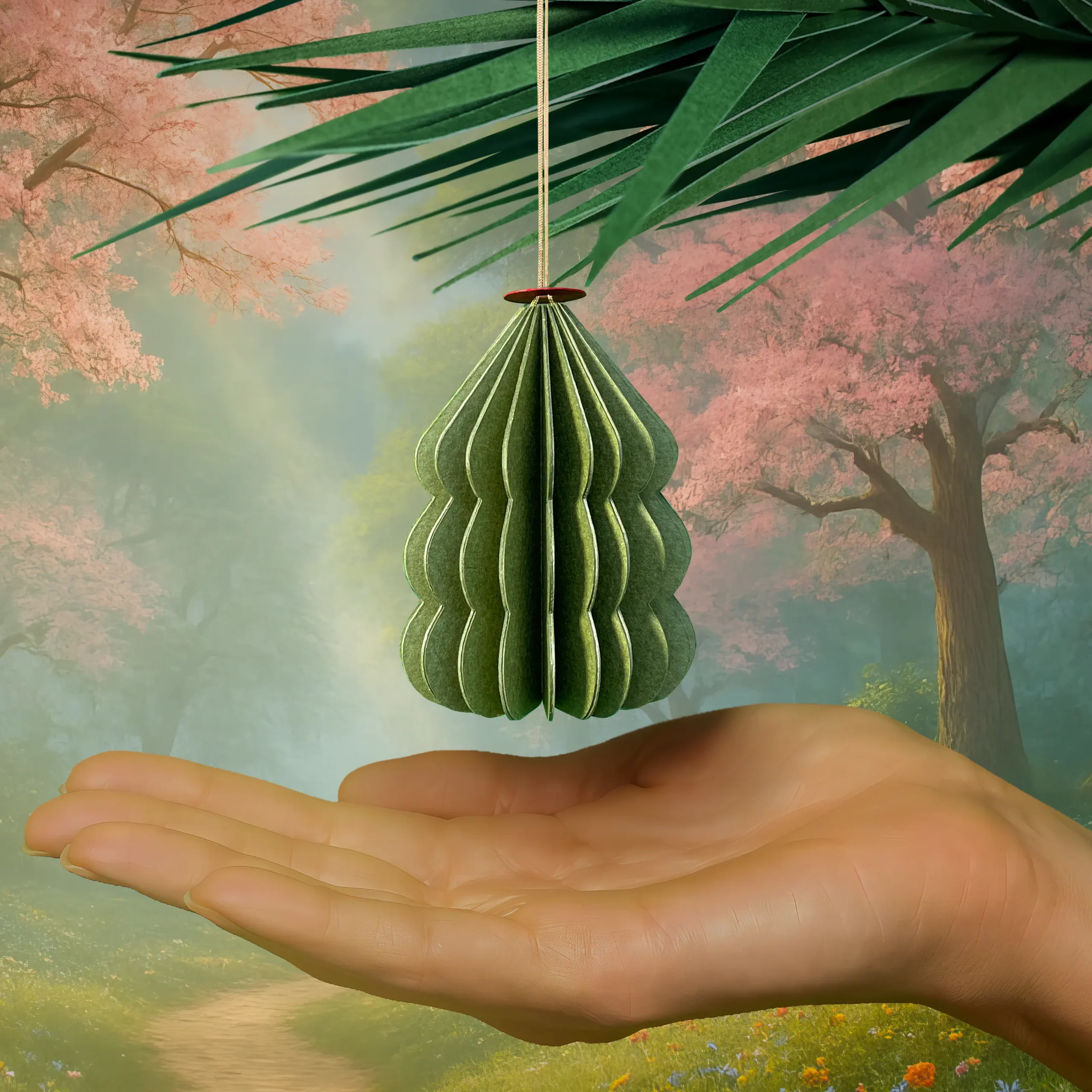 Inspirado en los bosques de invierno. Cada pliegue hecho a mano evoca la naturaleza y la magia de los adornos tradicionales.